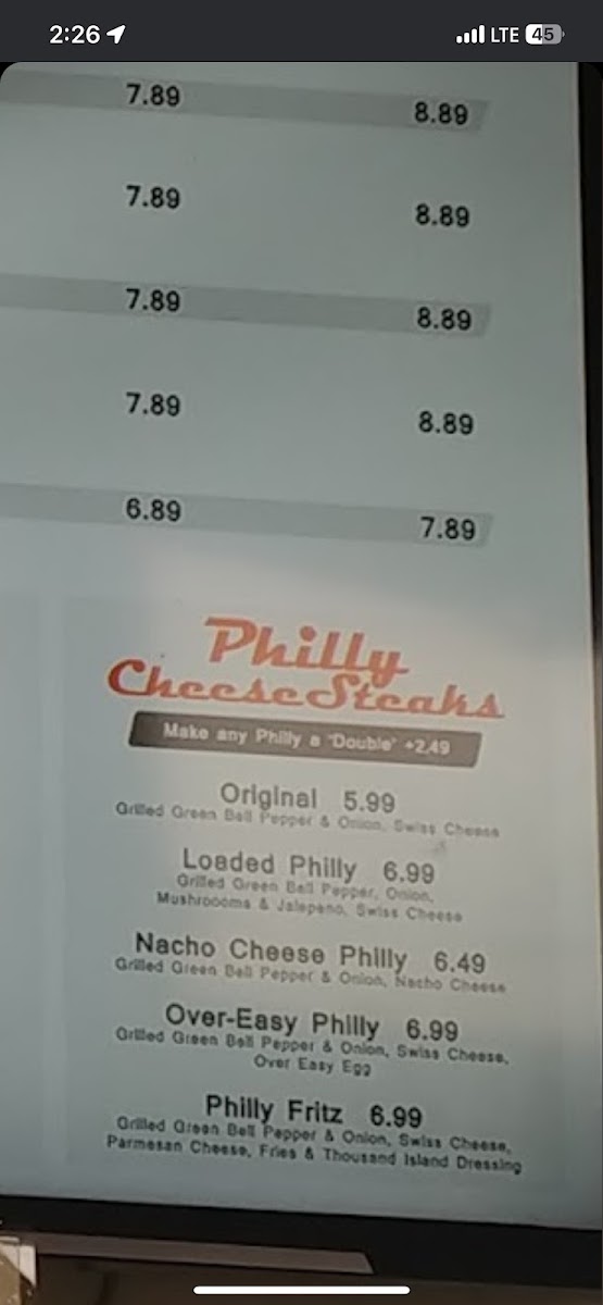 Grilled green bell pepper & onion, and swiss cheese. Combo includes one side & one 16 oz drink.